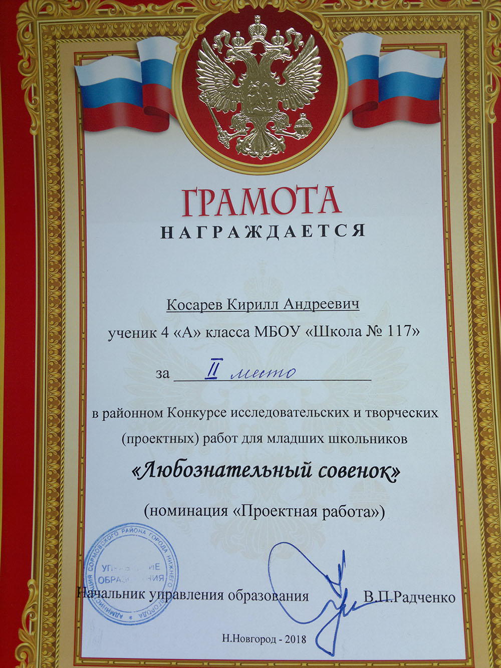 2 Место в районном НОУ